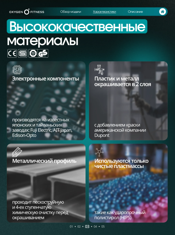 Тренажёр построен на высокопрочной раме с антикоррозийной обработкой и двухслойной покраской, что обеспечивает устойчивость и долговечность конструкции. Корпус выполнен из ударопрочного полистирола HIPS, рассчитанного на длительную эксплуатацию. Ключевые особенности движения: • Инерционный вес маховика30 кг(BioFusion™) при реальном весе10 кг— ровный, стабильный и тихий ход. • Длина шага540 мм— максимально естественная траектория, близкая к беговой, подходит пользователям разного роста. • Минимальное расстояние между педалями —70 мм, что снижает нагрузку на колени и тазобедренные суставы. • Дисковый шатун — повышенная надёжность и точность передачи усилия. • Ручная регулировка угла наклона (3 уровня) позволяет смещать акцент нагрузки и разнообразить тренировочный процесс. Антискользящие педали увеличенного размера обеспечивают уверенную фиксацию стопы даже при интенсивной работе. AZURE использует электромагнитную систему нагружения с 16 уровнями сопротивления, регулируемыми электронно. Это обеспечивает точную и плавную настройку нагрузки под любые цели — от восстановительных тренировок до интенсивной кардиоработы. Тренажёр оснащён современной TFT-консолью с расширенным набором показателей: • время, скорость, дистанция, • калории, пульс, уровень нагрузки, • программа, Ватты, количество шагов, • общая дистанция. Программный пакет включает 21 режим тренировки: • быстрый старт и ручной режим, • 12 предустановленных программ, • 4 пульсозависимые программы, • 1 программа целевого пульса, • режим работы по Ваттам. Для контроля пульса предусмотрены сенсорные датчики на поручнях. Рукоятки двухпозиционные, с нескользящим покрытием. Дополнительные возможности: • Bluetooth-колонка для воспроизведения аудио, • подключение к интернету, • функция проекции экрана, • подставка под планшет или смартфон, • интерфейс на английском языке. OXYGEN FITNESS AZURE — эллиптический тренажёр для тех, кто хочет получить максимум от домашних кардиотренировок: продвинутую биомеханику, интеллектуальные программы и уровень комфорта, сравнимый с профессиональным фитнес-клубом.